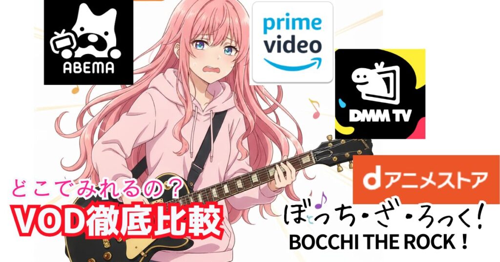 『ぼっち・ざ・ろっく!』は、その高い人気から、ほとんどの主要な動画配信サービス(VOD)で全話見放題配信されています。