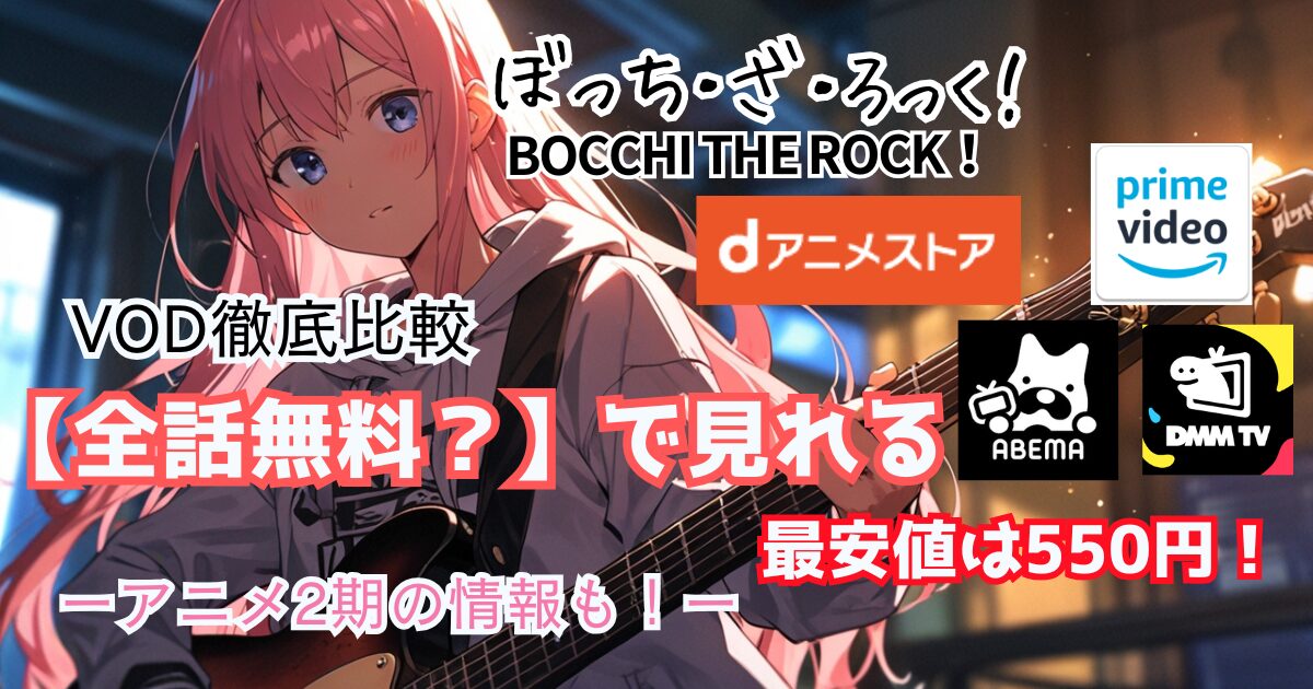 『ぼっち・ざ・ろっく!』は、その高い人気から、ほとんどの主要な動画配信サービス(VOD)で全話見放題配信されています。