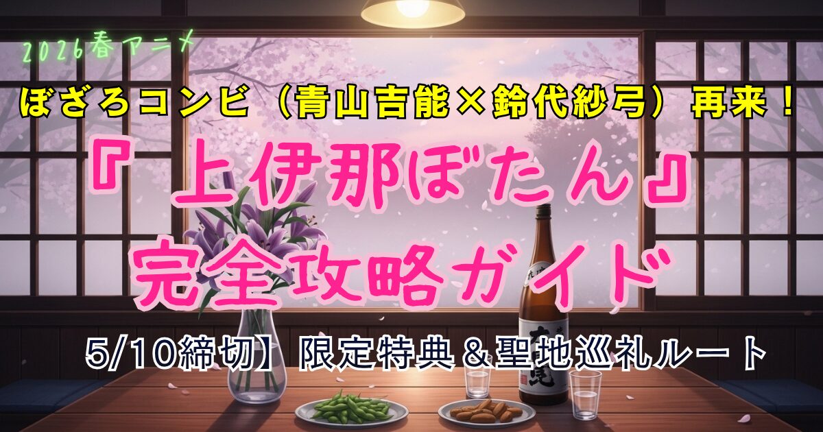 2026年4月10日放送開始の『上伊那ぼたん、酔へる姿は百合の花』は、そんな「疲れた現代人」のための、最高にチルいアニメです。